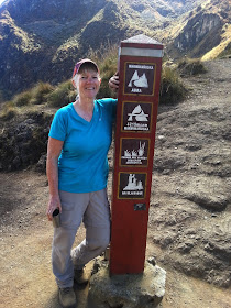 I walk alone most of the morning, carrying my thoughts which vary from positive to negative and back again.  There is more tingling in my fingers and I know I should have eaten more breakfast.  The physical work is very intense and there is just no way to go faster and maintain a good breathing pattern.  Tedious, suffocating, inching progress.  I realize my mistake in carrying water bottles because I cannot reach them in my side pockets without removing my pack.  I learn to ask for a hand occasionally when someone passes me.  We are all walking in the same direction and people are very congenial and supportive.  In spite of the physical challenge, I am able to appreciate that the weather is spectacular.  The Andes are majestic.